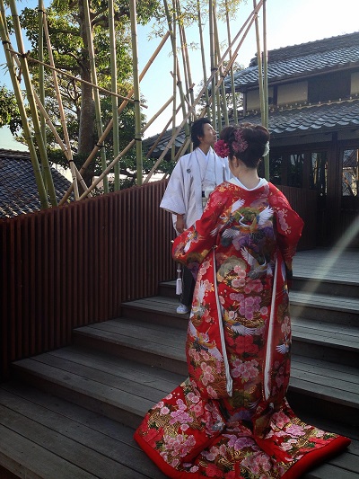 神社で神前挙式後、撮影に服部緑地で写真撮影される新郎新婦も多いのですが、